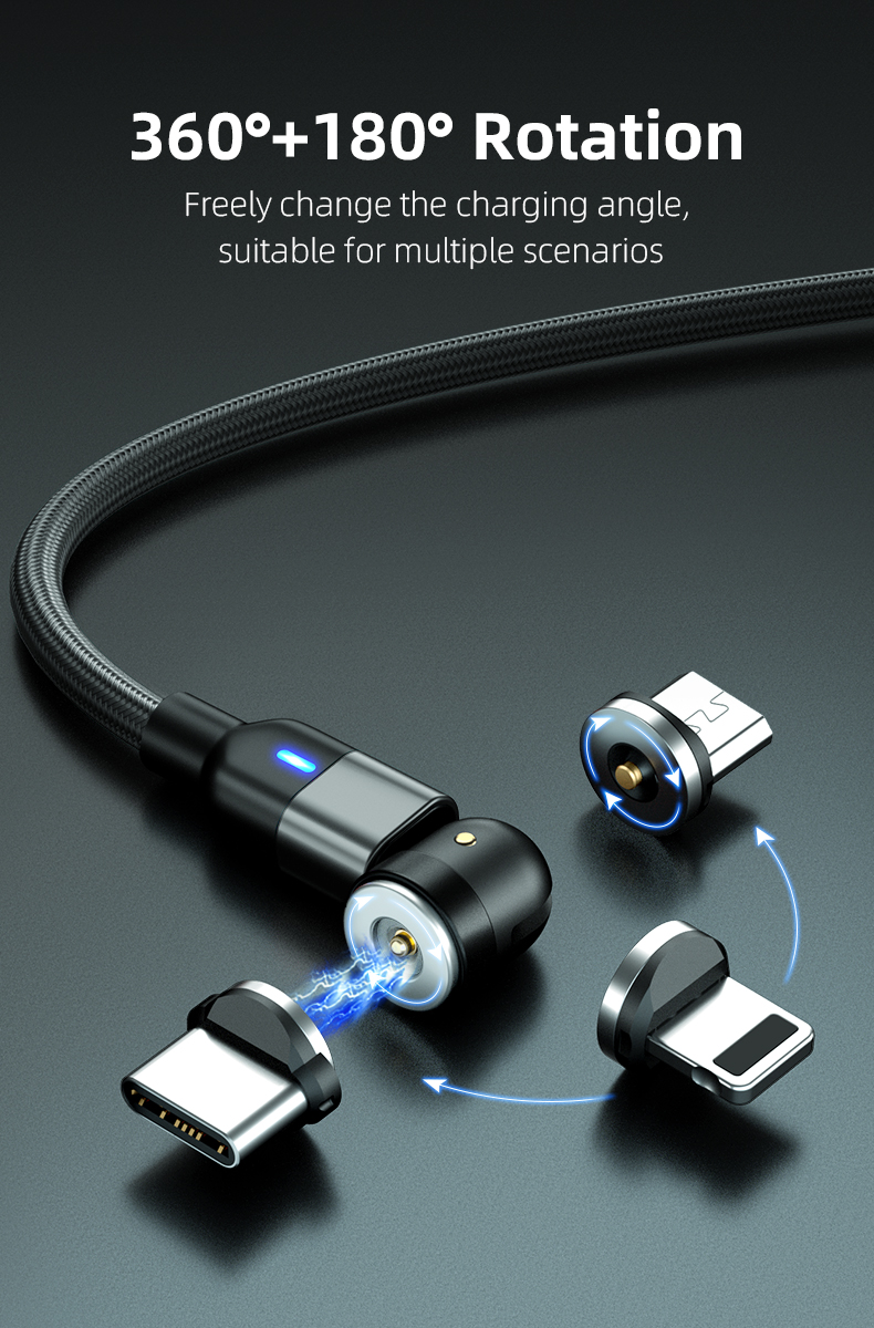 540-fokkal forgatható 3 az 1-ben mágneses gyorstöltő Pogo tűs kábelek